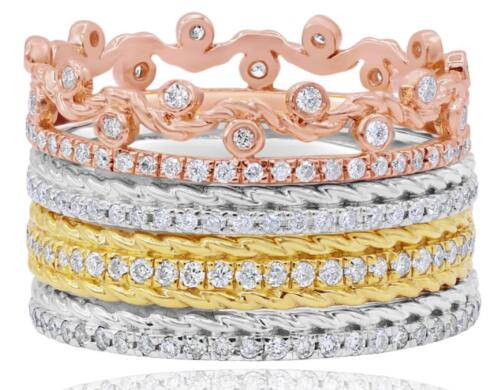 .93CT DIAMOND 14K TRI COLOR GOLD MULTI RING STACKABLE ETERNITY ANNIVERSARY RING