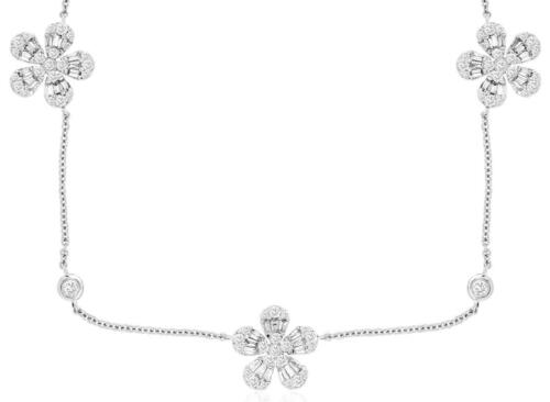 .93CT DIAMOND 14KT WHITE GOLD ROUND & BAGUETTE FLOWER BY THE YARD LOVE NECKLACE