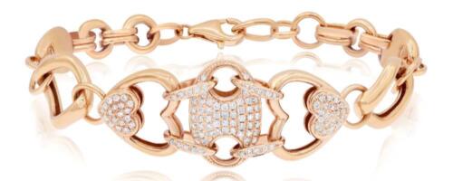 .95CT DIAMOND 18KT ROSE GOLD 3D MULTI HEART OVAL PAVE GEOMETRICAL LOVE BRACELET