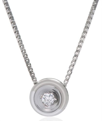 18KT WHITE GOLD FLOATING PENDANT. 3D CLASSIC ROUND SOLITAIRE MATTE AND SHINY DESIGN. ROUND DIAMOND IS F/G COLOR, VSSI CLARITY .01 CARATS. MEASURES 4mm WIDE. COMES ON A 14KT GOLD DIAMOND CUT 16" INCH CHAIN. WRITTEN APPRAISAL AVAILABLE. COMES IN A PRESENTABLE GIFT BOX.