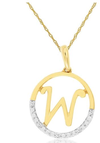 14KT WHITE AND YELLOW GOLD FUN FLOATING PENDANT. 3D CLASSIC W INITIAL CIRCULAR DESIGN. DIAMONDS ARE F/G COLOR, VSSI CLARITY .02 CARATS. COMES ON A 14KT GOLD DIAMOND CUT 16" INCH CHAIN. WRITTEN APPRAISAL AVAILABLE. COMES IN A PRESENTABLE GIFT BOX.