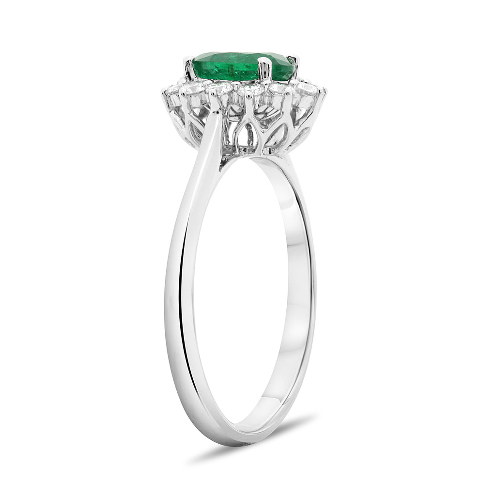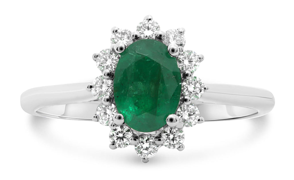 1.01CT DIAMOND & AAA EMERALD 18KT WHITE GOLD OVAL PRINCESS DIANA ENGAGEMENT RING