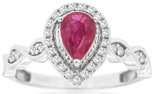1.01CT DIAMOND & AAA RUBY 14KT WHITE GOLD PEAR SHAPE & ROUND INFINITY LOVE RING