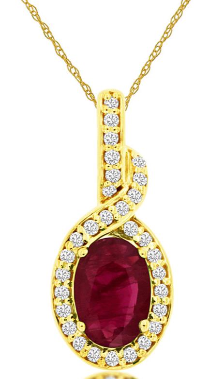 1.02CT DIAMOND & AAA RUBY 14K YELLOW GOLD OVAL & ROUND INFINITY FLOATING PENDANT