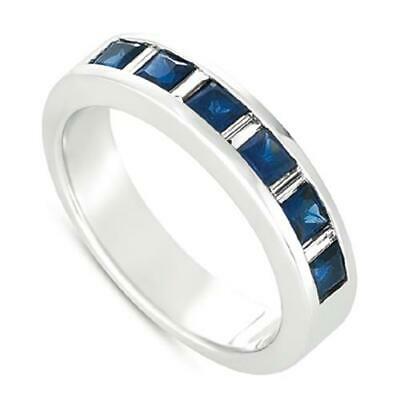 14KT WHITE GOLD LOVE RING. 3D CHANNEL DESIGN. BAGUETTE DIAMONDS ARE F/G COLOR, VSSI CLARITY .20 CARATS. AAA PRINCESS CUT SAPPHIRES ARE .82 CARATS. RING SIZE 6.5. CAN BE SIZED BY OUR MASTER JEWELER UPON REQUEST. WRITTEN APPRAISAL AVAILABLE. COMES IN A PRESENTABLE GIFT BOX.