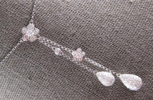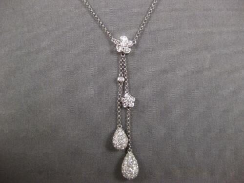 1.03CT DIAMOND 18KT WHITE GOLD DOUBLE TEAR DROP BY THE YARD LARIAT LOVE NECKLACE