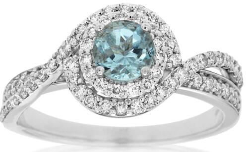 1.03CT DIAMOND & AAA AQUAMARINE 14KT WHITE GOLD ROUND DOUBLE HALO INFINITY RING