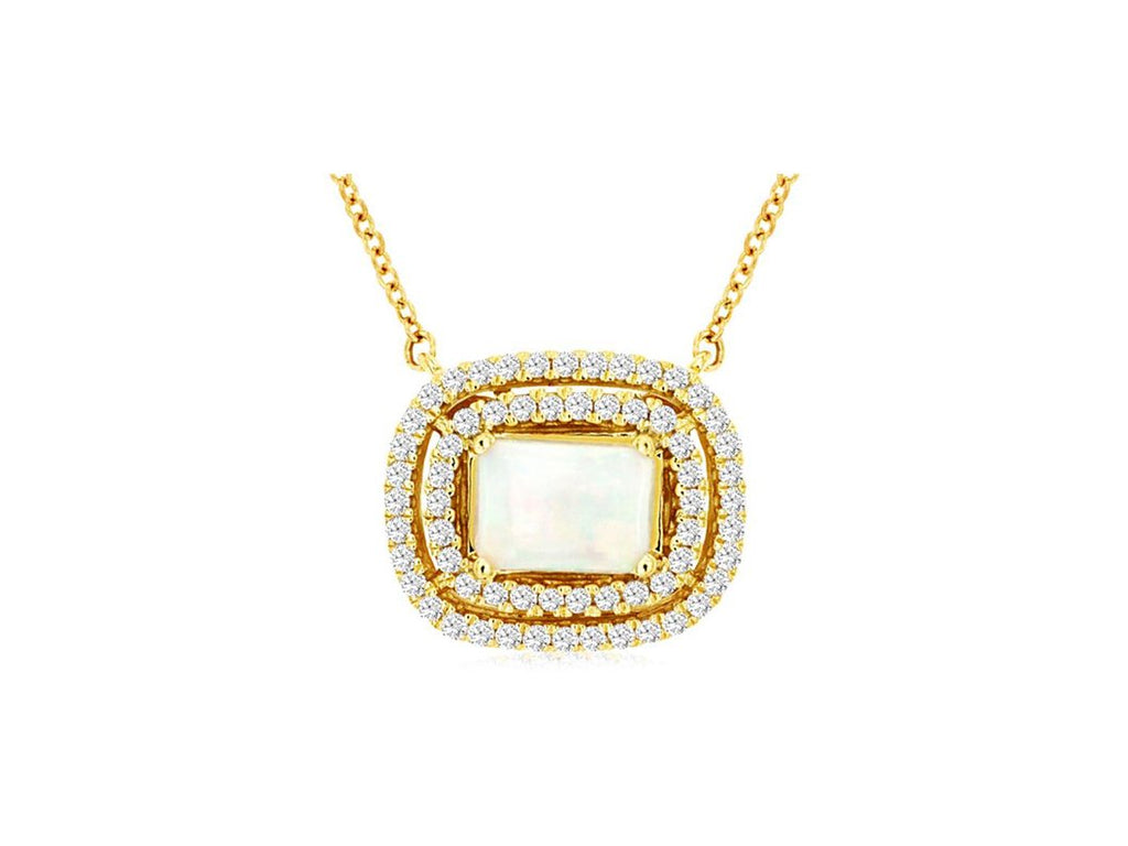 1.03CT DIAMOND & AAA OPAL 14K ROSE GOLD ROUND & SQUARE DOUBLE HALO OVAL NECKLACE