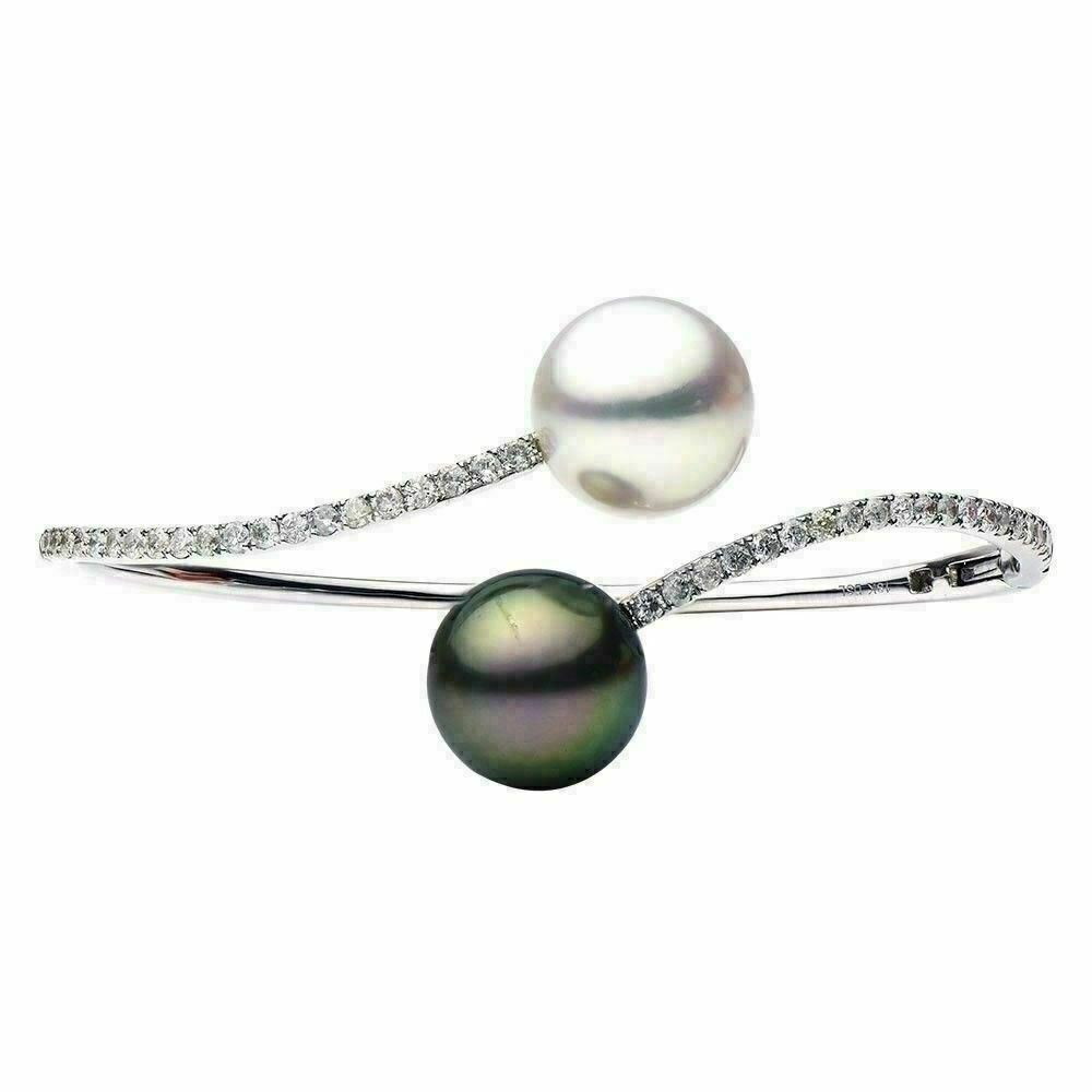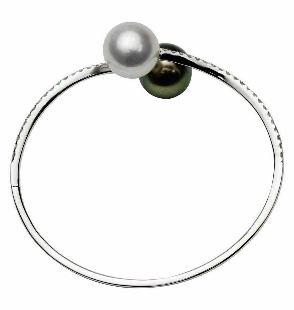 1.03CT DIAMOND WHITE & TAHITIAN SOUTH SEA PEARL 18K WHITE GOLD BANGLE BRACELET