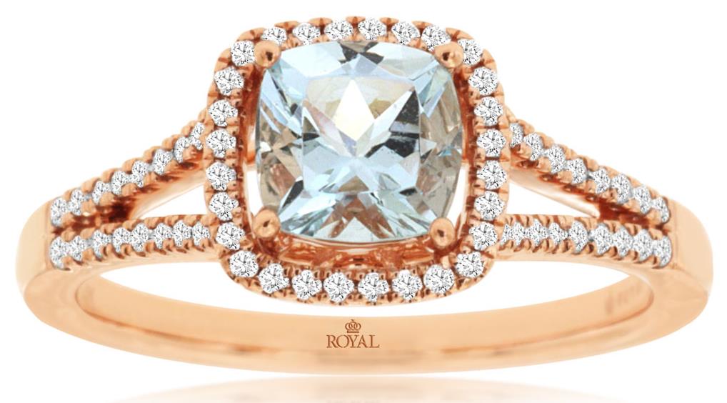 1.04CT DIAMOND & AAA AQUAMARINE 14KT ROSE GOLD SQUARE HALO FRIENDSHIP LOVE RING