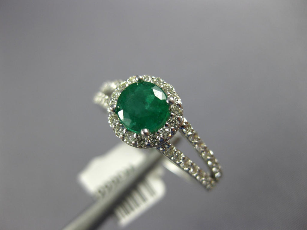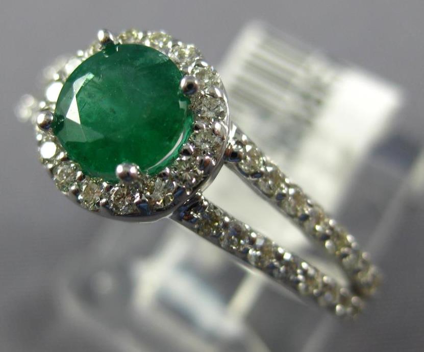 1.04CT DIAMOND & AAA EMERALD 14KT WHITE GOLD ROUND CLASSIC HALO ENGAGEMENT RING