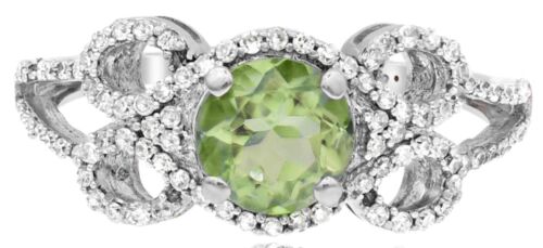 1.04CT DIAMOND & AAA LEMON QUARTZ 14K WHITE GOLD ROUND DOUBLE INFINITY LOVE RING