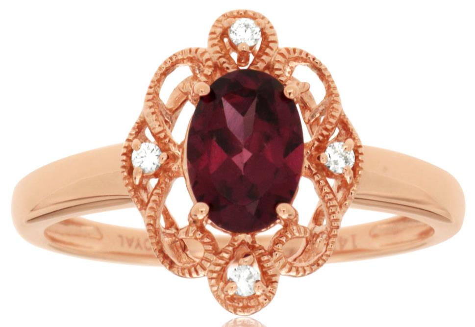 1.04CT DIAMOND & AAA RHODOLITE 14K ROSE GOLD OVAL & ROUND OPEN FILIGREE FUN RING