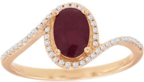 14KT ROSE GOLD FUN RING. 3D CRISS CROSS HALO DESIGN. ROUND DIAMONDS ARE F/G COLOR, VSSI CLARITY .14 CARATS. AAA EXTRA FACETED OVAL RUBY IS .90 CARATS. RING SIZE 7. CAN BE SIZED BY OUR MASTER JEWELER UPON REQUEST. WRITTEN APPRAISAL AVAILABLE. COMES IN A PRESENTABLE GIFT BOX.