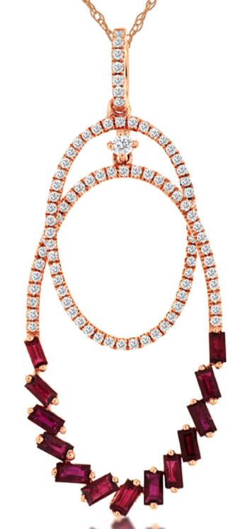 1.04CT DIAMOND & AAA RUBY 14KT ROSE GOLD ROUND & BAGUETTE OVAL FLOATING PENDANT