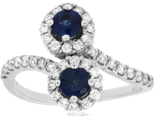 1.04CT DIAMOND & AAA SAPPHIRE 14KT WHITE GOLD 3D ROUND DOUBLE FLOWER LOVE RING