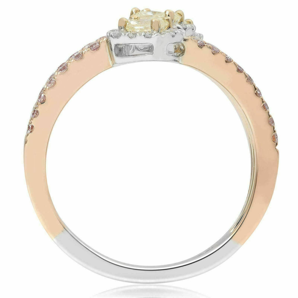 1.04CT WHITE YELLOW & PINK DIAMOND 18KT TRI COLOR GOLD 3 STONE ANNIVERSARY RING