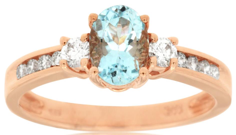1.05CT DIAMOND & AAA AQUAMARINE 14KT ROSE GOLD 3D OVAL & ROUND ENGAGEMENT RING
