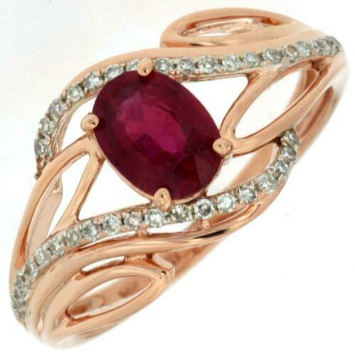 1.06CT DIAMOND & AAA RUBY 14K ROSE GOLD OVAL & ROUND DOUBLE LEAF FRIENDSHIP RING