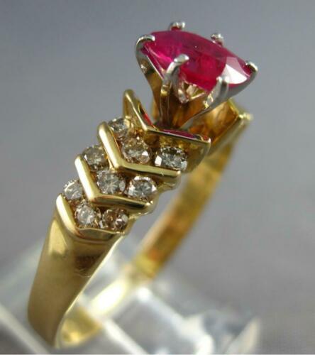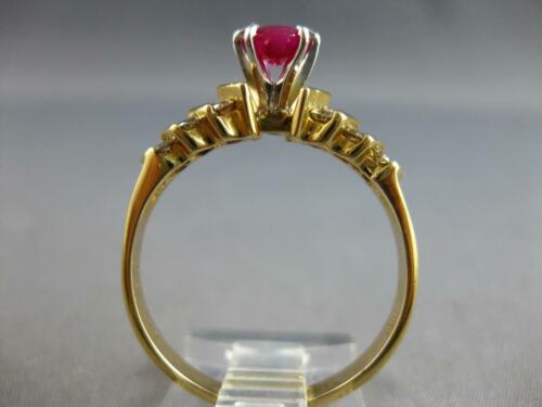 14KT YELLOW GOLD ENGAGEMENT RING. 3D CLASSIC DESIGN. ROUND DIAMONDS ARE F/G COLOR, VSSI CLARITY .23 CARATS. AAA OVAL RUBY IS .83 CARATS. MEASURES 7mm WIDE. RING SIZE 10. CAN BE SIZED BY OUR MASTER JEWELER UPON REQUEST. WRITTEN APPRAISAL AVAILABLE. COMES IN A PRESENTABLE GIFT BOX.