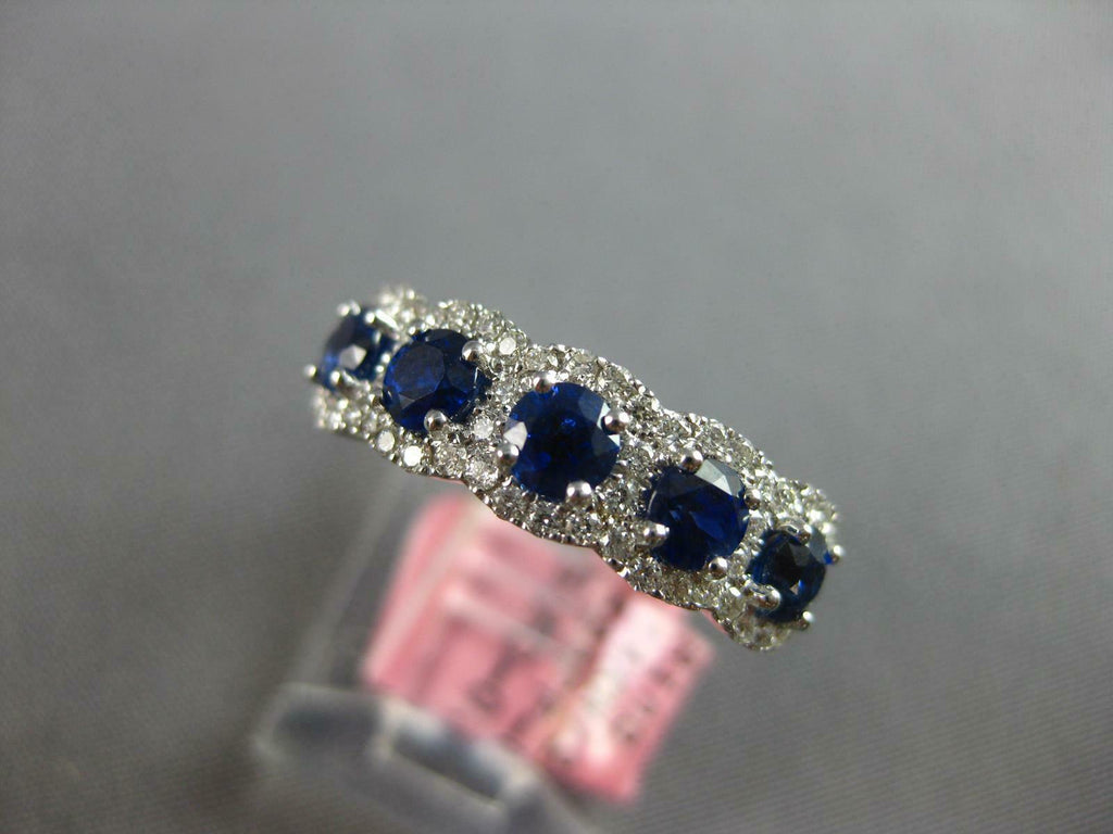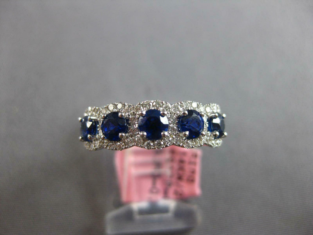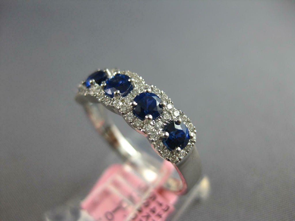 1.06CT DIAMOND & AAA SAPPHIRE 14K WHITE GOLD ROUND 5 STONE HALO ANNIVERSARY RING