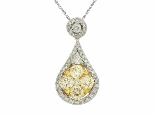 1.07CT WHITE & FANCY YELLOW DIAMOND 14KT WHITE GOLD CLUSTER TEAR DROP PENDANT