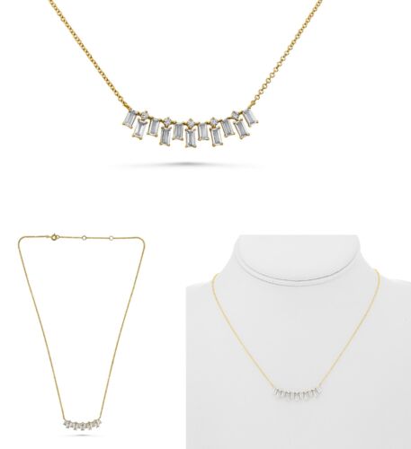 1.08CT DIAMOND 14KT YELLOW GOLD 3D ROUND & BAGUETTE HAPPY FACE BAR FUN NECKLACE