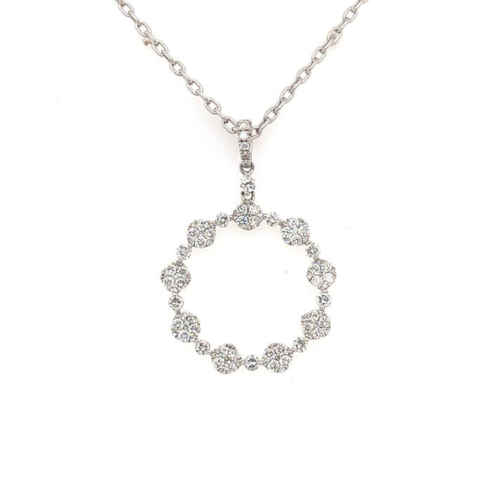 1.08CT DIAMOND 18KT WHITE GOLD 3D MULTI FLOWER CIRCLE OF LIFE FLOATING PENDANT