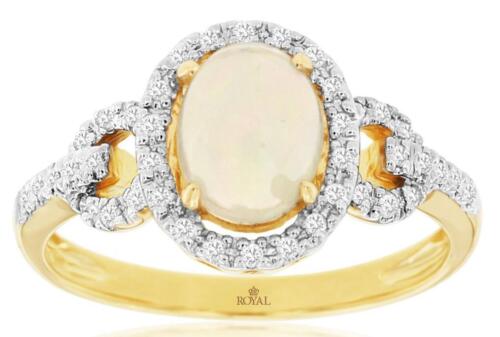 14KT YELLOW GOLD FUN RING. 3D HALO LOVE KNOT DESIGN. ROUND DIAMONDS ARE F/G COLOR, VSSI CLARITY .18 CARATS. AAA OVAL OPAL IS .90 CARATS. RING SIZE 7. CAN BE SIZED BY OUR MASTER JEWELER UPON REQUEST. WRITTEN APPRAISAL AVAILABLE. COMES IN A PRESENTABLE GIFT BOX.