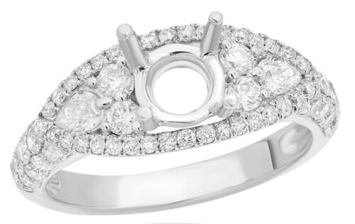 1.09CT DIAMOND 14KT WHITE GOLD 3D ROUND & PEAR SHAPE SEMI MOUNT ENGAGEMENT RING