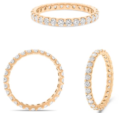 1.0CT DIAMOND 14K ROSE GOLD 3D ROUND CLASSIC SHARED PRONG ETERNITY WEDDING RING