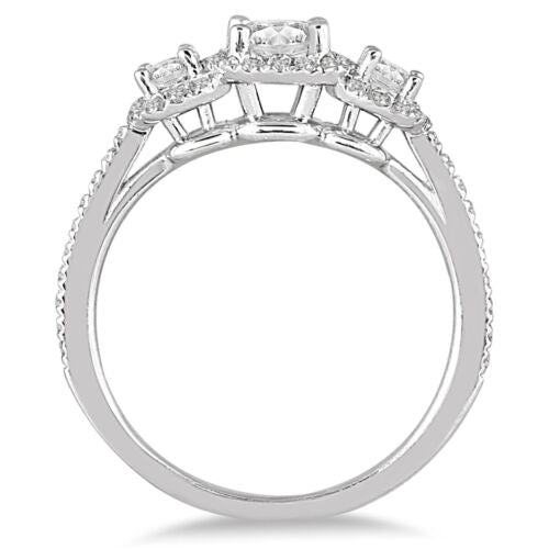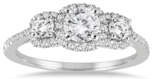 1.0CT DIAMOND 14K WHITE GOLD 3D ROUND 3 STONE HALO PAST PRESENT FUTURE LOVE RING