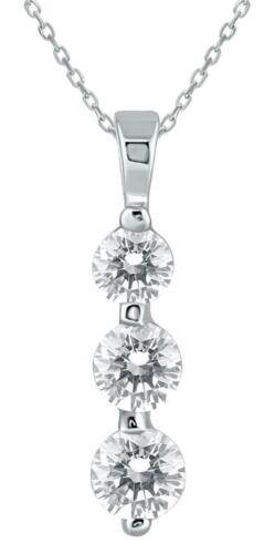 1.0CT DIAMOND 14K WHITE GOLD ROUND 3 STONE JOURNEY SHARED PRONG FLOATING PENDANT