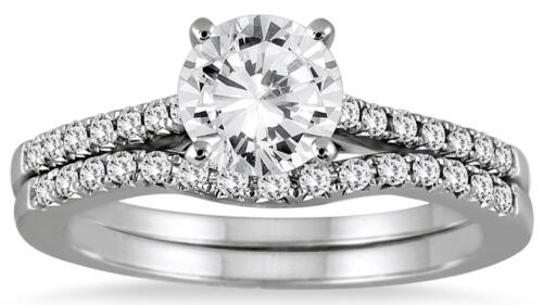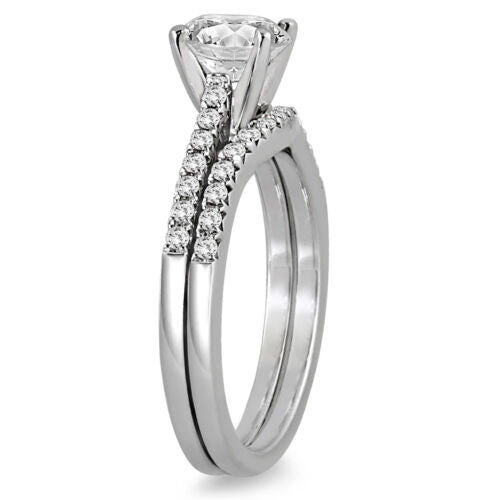 1.0CT DIAMOND 14KT WHITE GOLD 3D CLASSIC SOLITAIRE ENGAGEMENT WEDDING RING SET