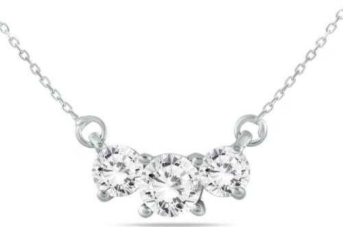 1.0CT DIAMOND 14KT WHITE GOLD 3D ROUND 3 STONE PAST PRESENT FUTURE LOVE NECKLACE