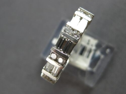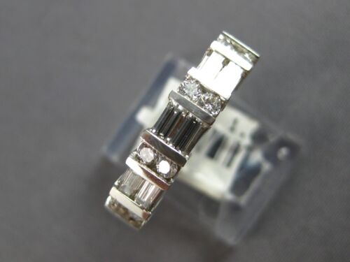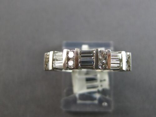 14KT WHITE GOLD WEDDING ANNIVERSARY RING. 3D CLASSIC TWO ROW CHANNEL DESIGN. ROUND AND BAGUETTE DIAMONDS ARE F/G COLOR, VSSI CLARITY 1.0 CARAT. MEASURES 5mm WIDE. RING SIZE 6.75. CAN BE SIZED BY OUR MASTER JEWELER UPON REQUEST. WRITTEN APPRAISAL AVAILABLE. COMES IN A PRESENTABLE GIFT BOX.