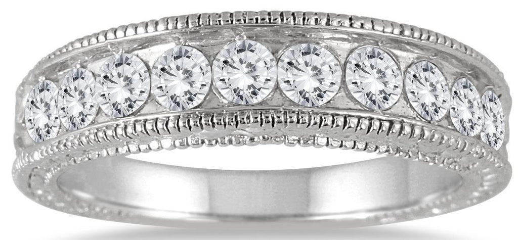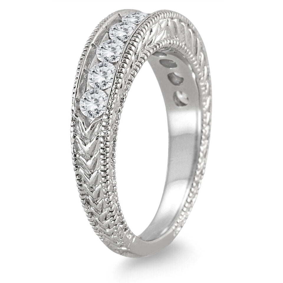 1.0CT DIAMOND 14KT WHITE GOLD 3D ROUND CHANNEL FILIGREE WEDDING ANNIVERSARY RING