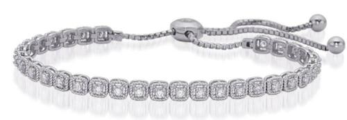 1.0CT DIAMOND 14KT WHITE GOLD 3D SQUARE FILIGREE ADJUSTABLE FUN TENNIS BRACELET