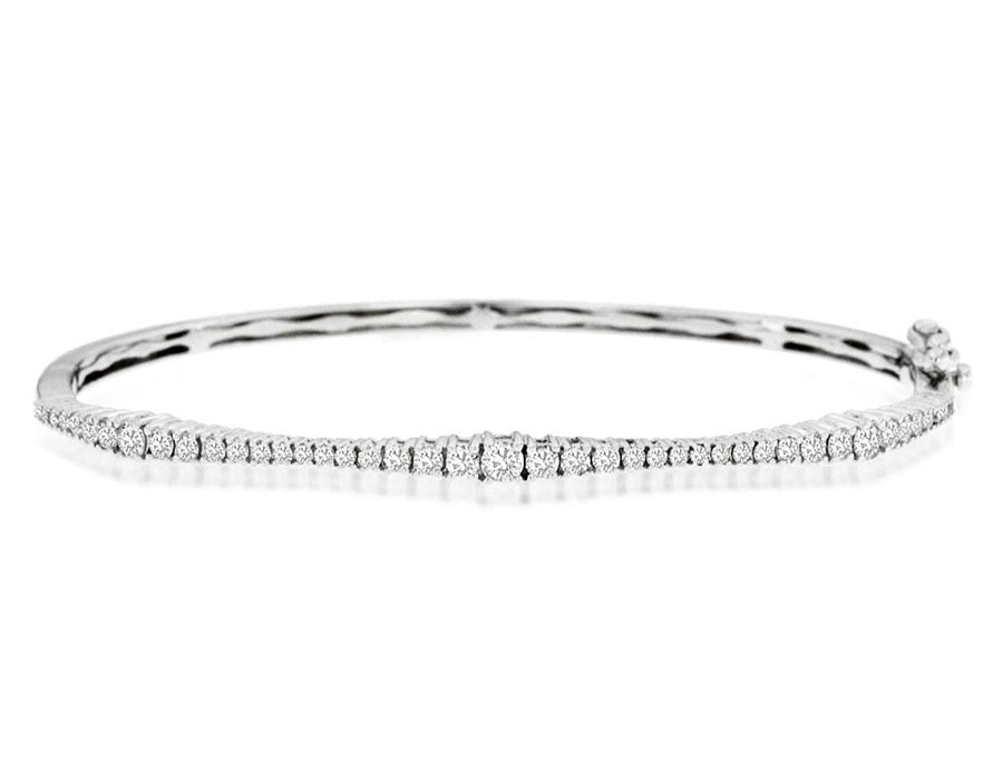 14KT WHITE GOLD BANGLE BRACELET. 3D CLASSIC BAMBOO SEMI ETERNITY DESIGN. ROUND DIAMONDS ARE F/G COLOR, VSSI CLARITY 1.0 CARAT. FITS UP TO 7" INCH WRIST. WRITTEN APPRAISAL AVAILABLE. COMES IN A PRESENTABLE GIFT BOX.