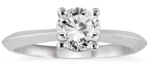 1.0CT DIAMOND 14KT WHITE GOLD CLASSIC ROUND SOLITAIRE KNIFE EDGE ENGAGEMENT RING