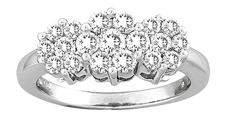 1.0CT DIAMOND 14KT WHITE GOLD ROUND 3D INVISIBLE FLOWER PAST PRESENT FUTURE RING