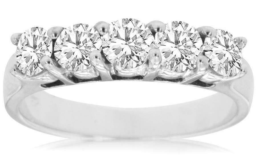 1.0CT DIAMOND 14KT WHITE GOLD ROUND 5 STONE SHARE PRONG WEDDING ANNIVERSARY RING