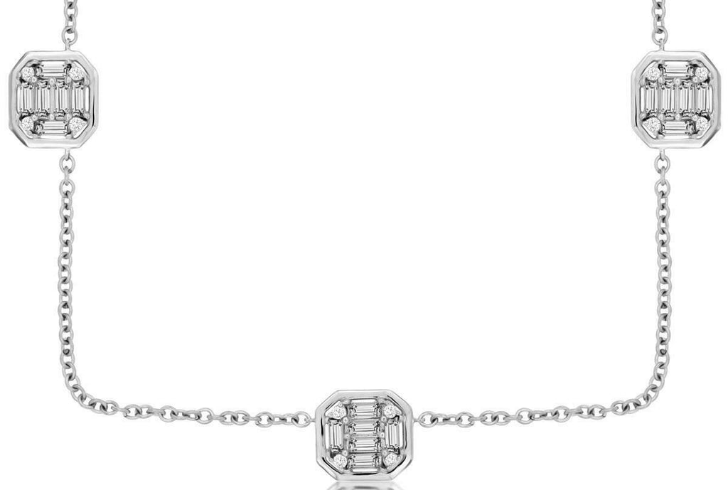 1.0CT DIAMOND 14KT WHITE GOLD ROUND & BAGUETTE OCTAGON BY THE YARD LOVE NECKLACE