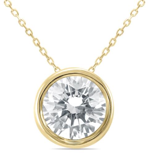 1.0CT DIAMOND 14KT YELLOW GOLD 3D ROUND SOLITAIRE BEZEL ETOILE FLOATING PENDANT
