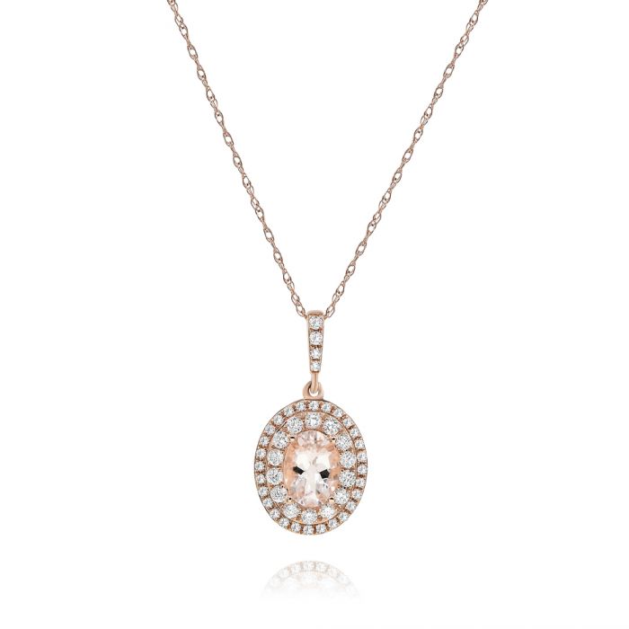 1.0CT DIAMOND & AAA MORGANITE 14K ROSE GOLD ROUND & OVAL FLOWER FLOATING PENDANT