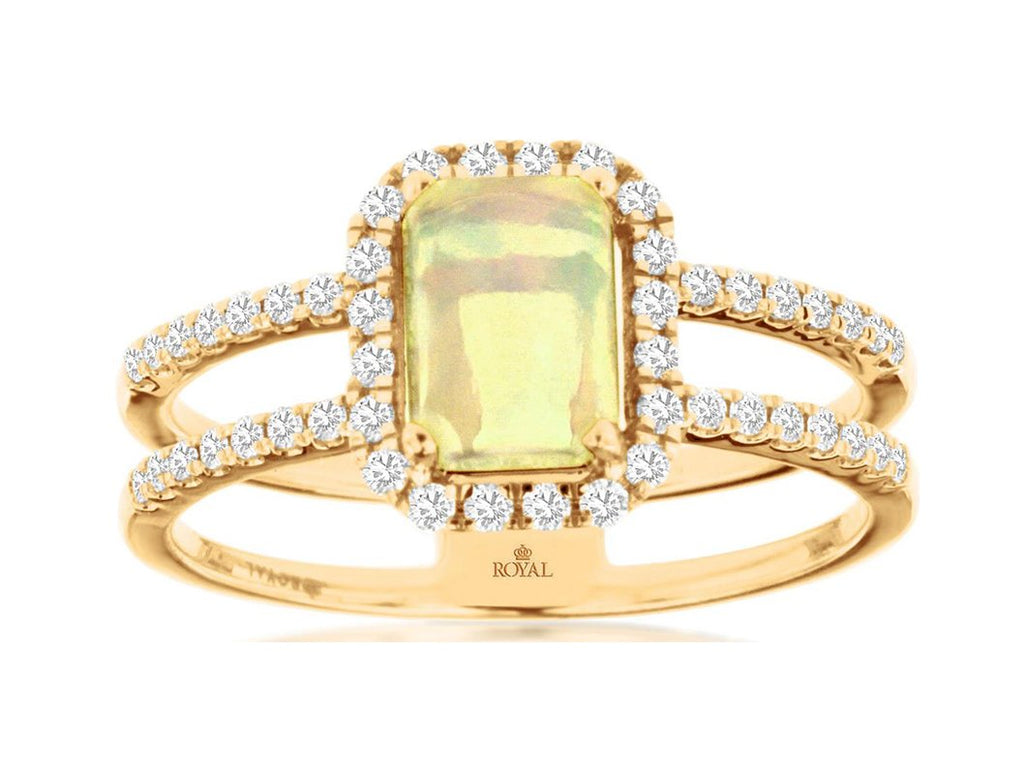 1.0CT DIAMOND & AAA OPAL 14K YELLOW GOLD 3D CUSHION & ROUND HALO ENGAGEMENT RING