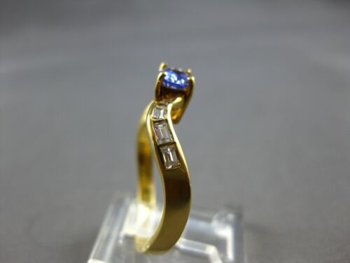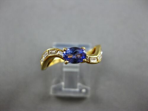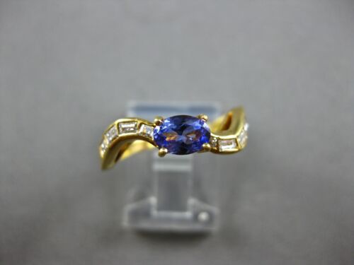 18KT YELLOW GOLD FUN RING. 3D SWIRL DESIGN. EMERALD CUT DIAMONDS ARE F/G COLOR, VVS-VS CLARITY .40 CARATS. AAA OVAL TANZANITE IS .60 CARATS. MEASURES 4mm WIDE. RING SIZE 7.5. CAN BE SIZED BY OUR MASTER JEWELER UPON REQUEST. WRITTEN APPRAISAL AVAILABLE. COMES IN A PRESENTABLE GIFT BOX.