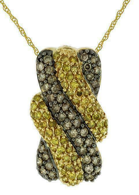 1.0CT MOCHA & FANCY YELLOW DIAMOND 14KT YELLOW GOLD MULTI ROW X LOVE FUN PENDANT