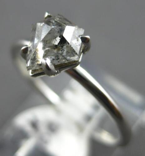 18KT WHITE GOLD ENGAGEMENT RING. 3D CLASSIC SOLITAIRE DESIGN. EXTRA FACETED PEAR SHAPE SALT AND PEPPER DIAMOND IS 1.0 CARAT. MEASURES 6.5mm WIDE. RING SIZE 6.5. CAN BE SIZED BY OUR MASTER JEWELER UPON REQUEST. WRITTEN APPRAISAL AVAILABLE. COMES IN A PRESENTABLE GIFT BOX.