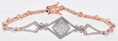 1.10CT DIAMOND 14K WHITE & ROSE GOLD 3D CLUSTER ROUND SQUARE FUN TENNIS BRACELET